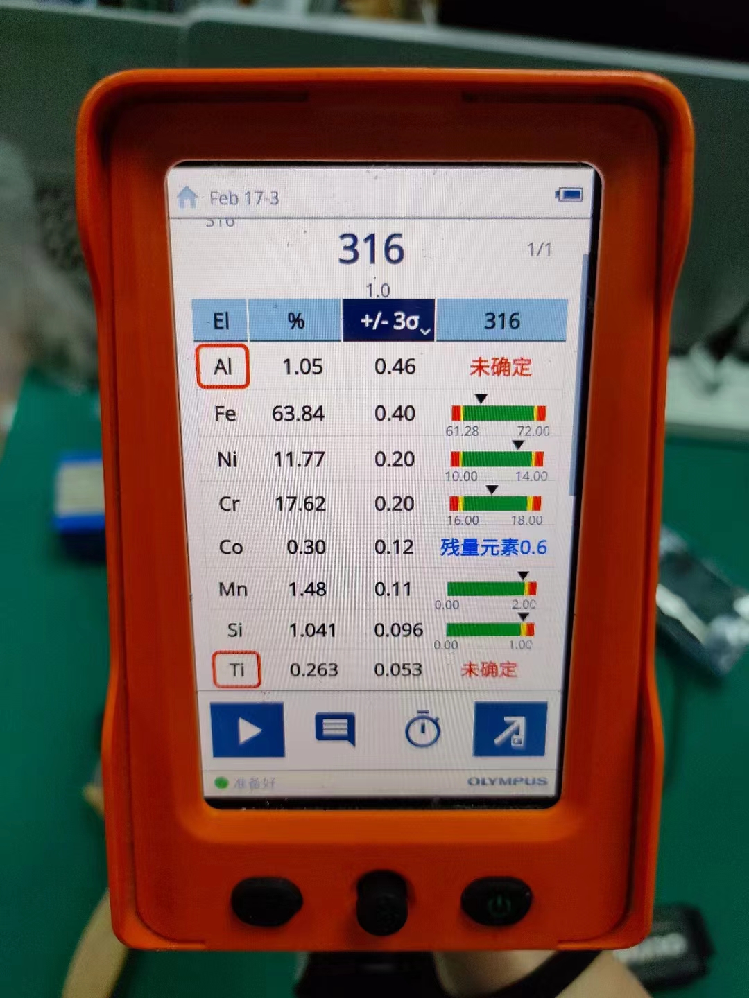 手持式光譜儀的用戶界面類似智能手機的界面,使用非常簡便,初學的操作人員只需很少的培訓,即可自如操作。用戶可以在分析儀屏幕上直觀地看到檢測結果,包括牌號識別信息、規格比較信息及元素的組成成分信息等。