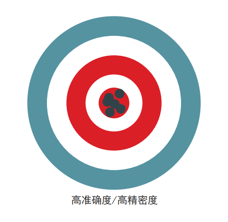 精密度是可重復(fù)性的一種度量,或者說一個檢測結(jié)果與另一個檢測結(jié)果的相近程度。準確度表明所獲得的結(jié)果是否準確地反映了實際情況(接近真值)。當然,我們希望任何分析技術(shù)都能提供優(yōu)質(zhì)的精密度和準確度。