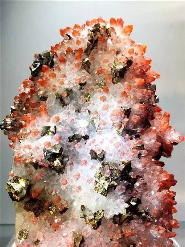 金黃色的黃銅礦,與紅水晶共生