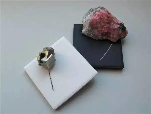 礦物還有一個奇怪之處,很多礦物的顏色與它的粉末的顏色不一樣。通常,我們的觀察方法是:拿起礦物,然后在白色無釉瓷板上劃擦,觀察這道劃痕留下的顏色,即條痕色。比如,看起來呈黑色的赤鐵礦,它的條痕卻為褐紅色,用這一點就可以將其與同為黑色的鉻鐵礦進行區分,因為鉻鐵礦的條痕為黑色;在區別同為金黃色的黃鐵礦和黃銅礦時,也可以采用此法,條痕顏色為黑色者為黃鐵礦,若黑色中稍帶有綠色,則為黃銅礦
