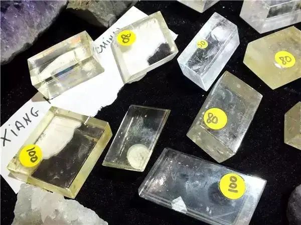 再比如冰洲石,它有三個方向的完全解理,通常會沿著解理面開裂形成一系列斜平行六面體,即非常完美的菱形塊體,這是它十分獨特的性質。