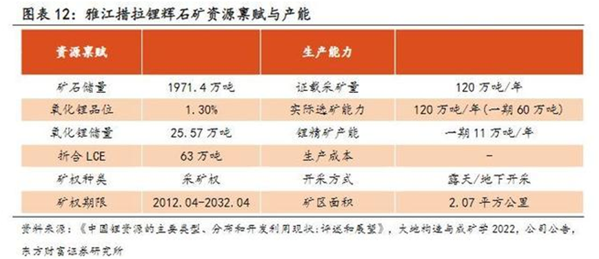 四川天齊盛合鋰業(yè)最核心的資產(chǎn)是雅江措拉鋰輝石礦,該礦位于甲基卡超大型鋰輝石礦區(qū)西礦段,也是天齊鋰業(yè)在國內(nèi)布局的主要鋰礦。據(jù)統(tǒng)計,截止2021年12月31日,措拉鋰輝石礦礦區(qū)擁有LCE 當(dāng)量約63萬噸,控制資源量1420萬噸,平均Li2O品位為1.30%,伴生鈹、鈮、鉭。