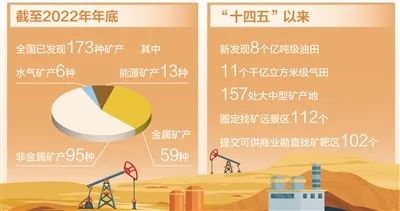 礦產資源是經濟社會發展的重要物質基礎,礦產資源勘查開發事關國計民生和國家安全。截至2022年年底,全國已發現173種礦產;2022年,我國近四成礦產儲量均有上升……日前發布的《中國礦產資源報告(2023)》顯示,我國推進實施新一輪找礦突破戰略行動效果顯著。