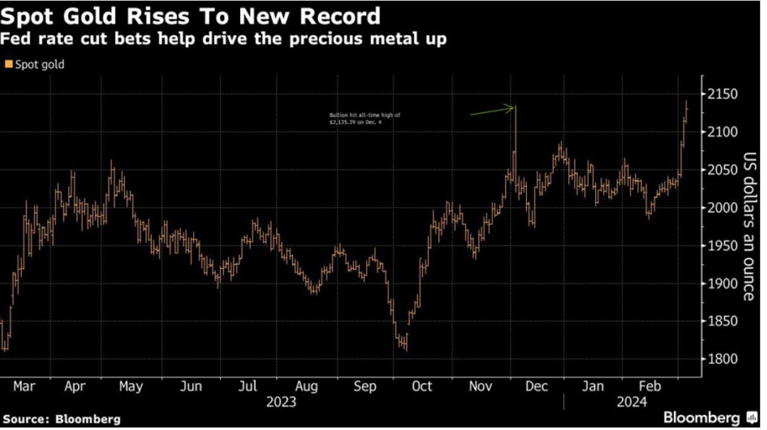 自2月28日至今,國際金價連續上漲。3月5日,現貨黃金價格創歷史新高,一度達到2141美元/盎司,打破了去年12月4日創下的每盎司2135.39美元的紀錄。國際金價在過去五個交易日上漲超過100美元。而據媒體從多個黃金珠寶品牌獲悉,其3月5日公布的國內足金首飾價格均突破645元/克,在前一日歷史高位的基礎上,再創新高。