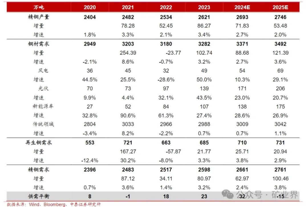 據(jù)中泰證券近日測算,2025年全球銅一改此前三年的過剩情況,或?qū)⒊霈F(xiàn)15萬噸的供需缺口。