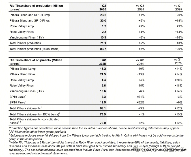 2025年力拓皮爾巴拉鐵礦石發(fā)運量目標(100%)維持3.23-3.38億噸不變。