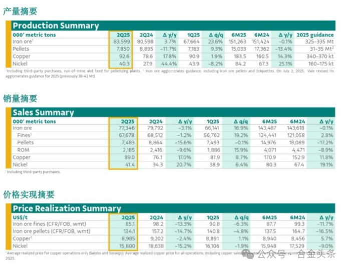 當?shù)貢r間22日,總部位于巴西里約熱內盧的礦業(yè)巨頭淡水河谷發(fā)布2025年第二季度產銷量報告稱,報告指出,鐵礦石業(yè)務方面,新資產逐步增產,運營可靠性不斷提升,這些將支持公司更順利地完成2025年生產計劃。